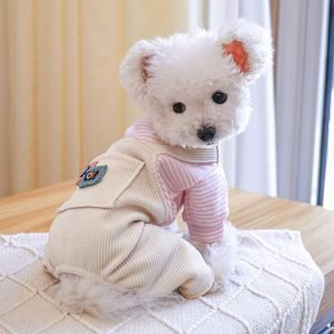 Beige Dog Overalls Couple Striped Puppy Clothes Pet Dress Pant T-Shirts Jumpsuit for Small Medium Dogs Cats, M