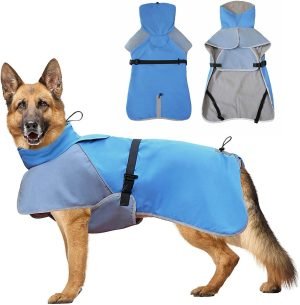 Dog Raincoat 2 Piece Sets, Adjustable Dog Rain Jacket and Vest, Double Layer, Storage Pocket for Giant,Large and Medium Dogs (Lake Blue, 12XL)