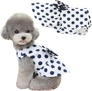 Cute Polka Dots Cat Small Dog Dress with Bow Tie Summer Clothes with D-Ring on The Back for Puppy Cat(White with Navy Dots, X-Small)
