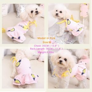2 Pack Dog Shirt Skirt Striped Printed T Shirts Cotton Vest Pleated Dress Puppy Clothes Summer Shirts Cute Girl Boy Tops Soft Pet Apparel for Small Medium Dogs Cats Outfits Costume(M)