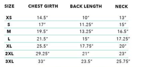This is the reason why we don’t mention weights on our size chart. We know you’ll get the best fit by following measurements instead of body weight. Our size chart indicates the garment measurements (garment is measured when laid flat) and each garment stretches a little so it shouldn’t be too difficult to find your pup’s perfect size. Check out our size chart and measuring guide in the product photos above.